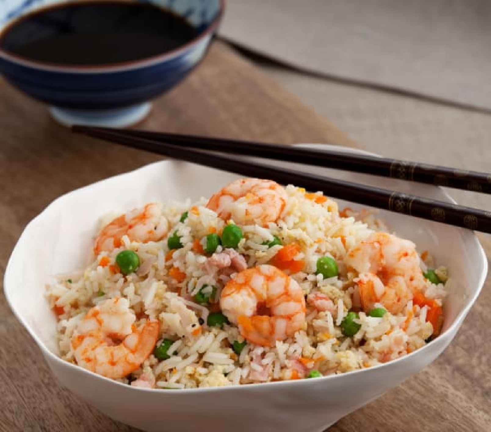 - Introduzca el cestillo en el vaso con la zanahoria reservada, las arvejas y los camarones. Programe 10 min/Varoma/vel 2. Con la muesca de la espátula, extraiga el cestillo y vierta su contenido sobre el arroz reservado. Añada el jamón y la tortilla y mezcle con la espátula. Sirva inmediatamente.