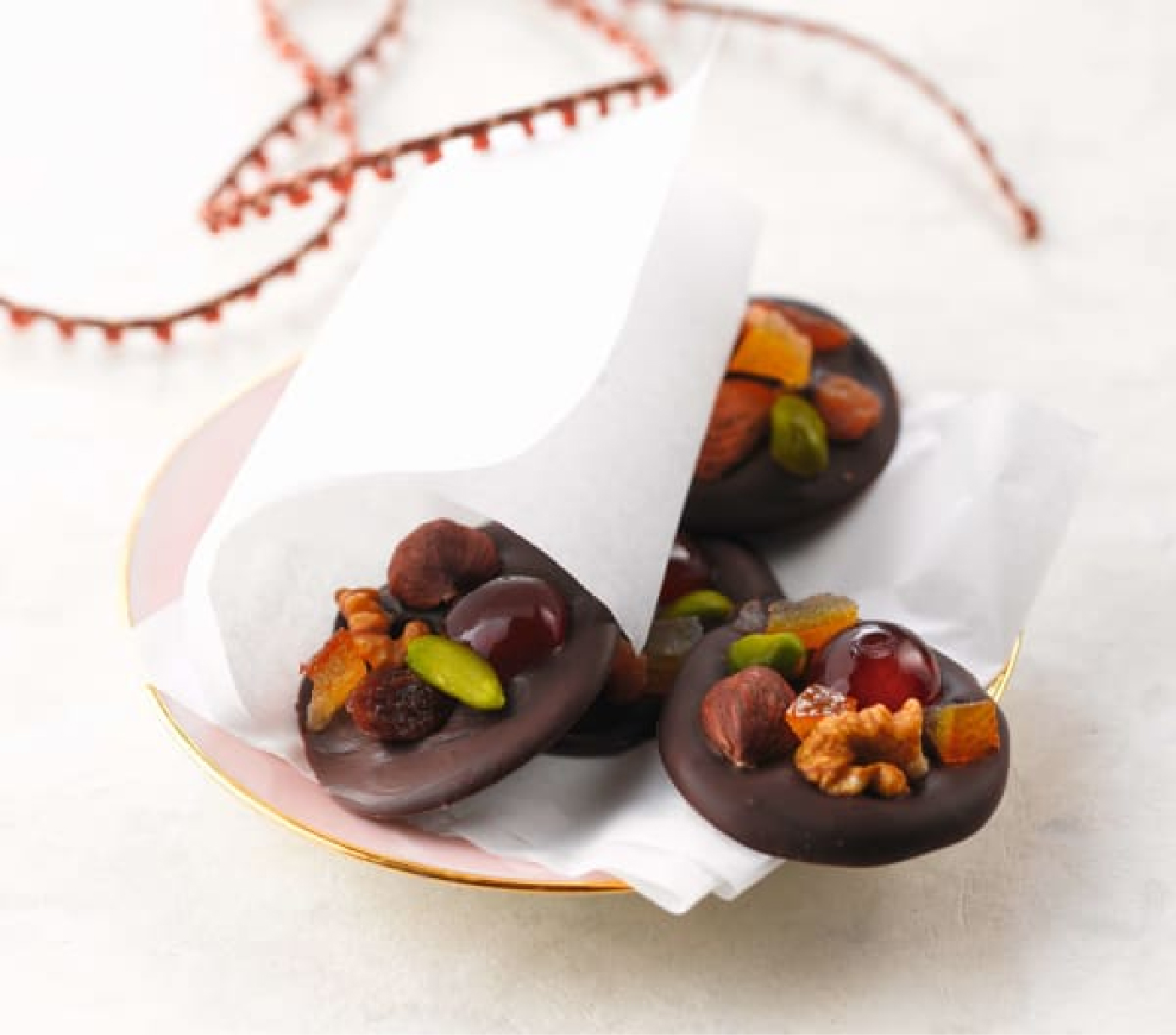 - Es conveniente realizar pocas unidades a la vez para que el chocolate esté fluido y los frutos secos, etc. queden adheridos antes de que se endurezca.