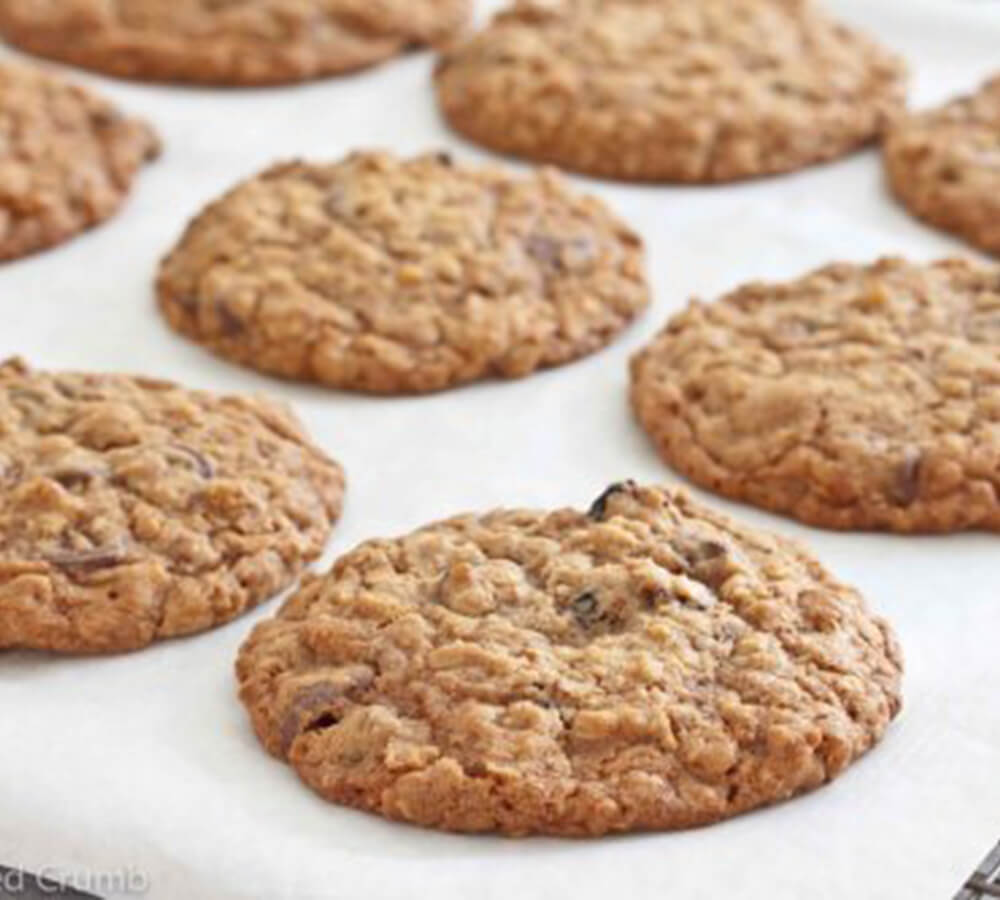 - Para preparar galletas de avena y pasas, omita el paso 2 y 3. En el paso 5 añada 100 g de avena en vez de 80 g. En el paso 6 agregue 120 g de pasas en lugar del chocolate y frutos secos.