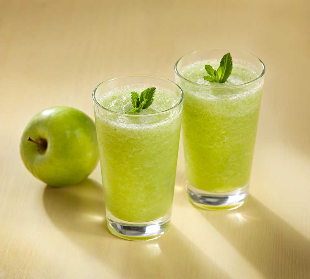 - Ponga en el vaso las manzanas, los limones, el azúcar, las hojas frescas de menta y triture 30 seg/vel 9.