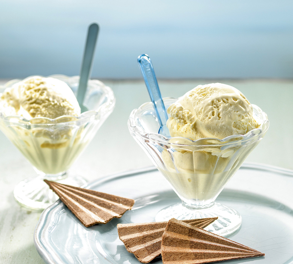 HELADO DE LECHE DE ALMENDRAS CON VAINILLA Y ALBAHACA