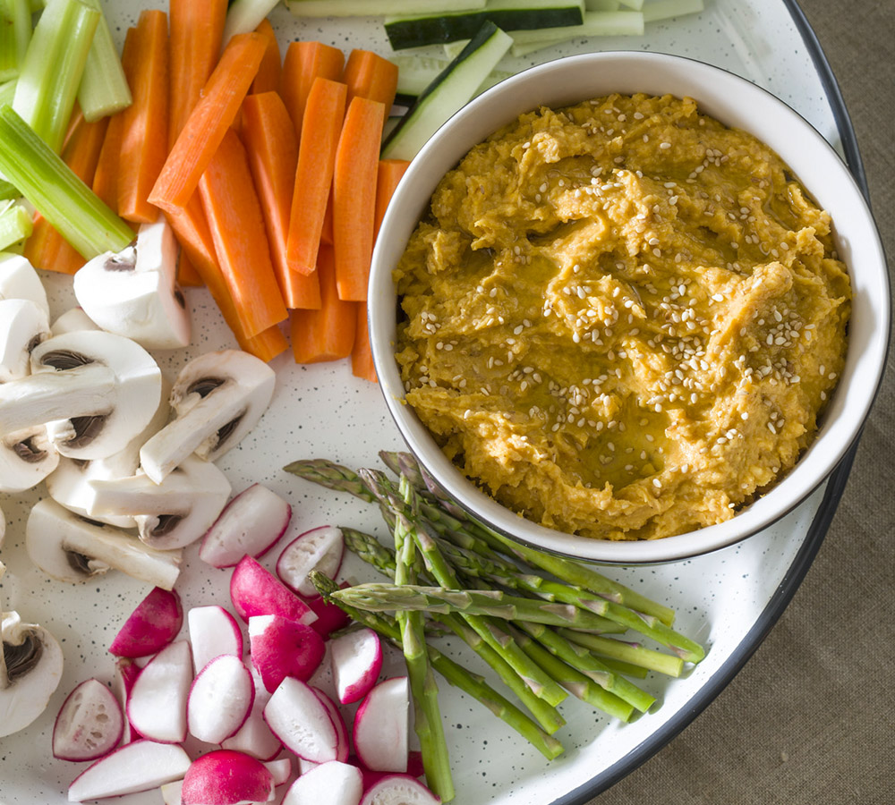 HUMMUS DE CAMOTE CON VERDURAS CRUDAS