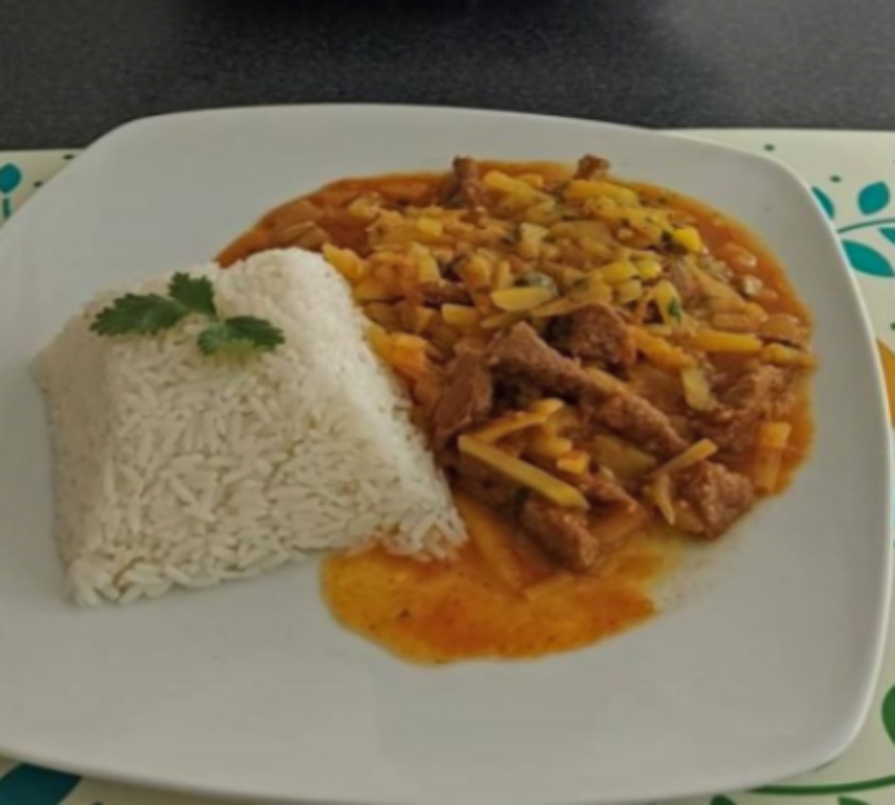 - Añada la carne y programe 13 min/100°C/giro inverso/vel 2. 5 minutos antes de que termine añada el culantro o perejil.