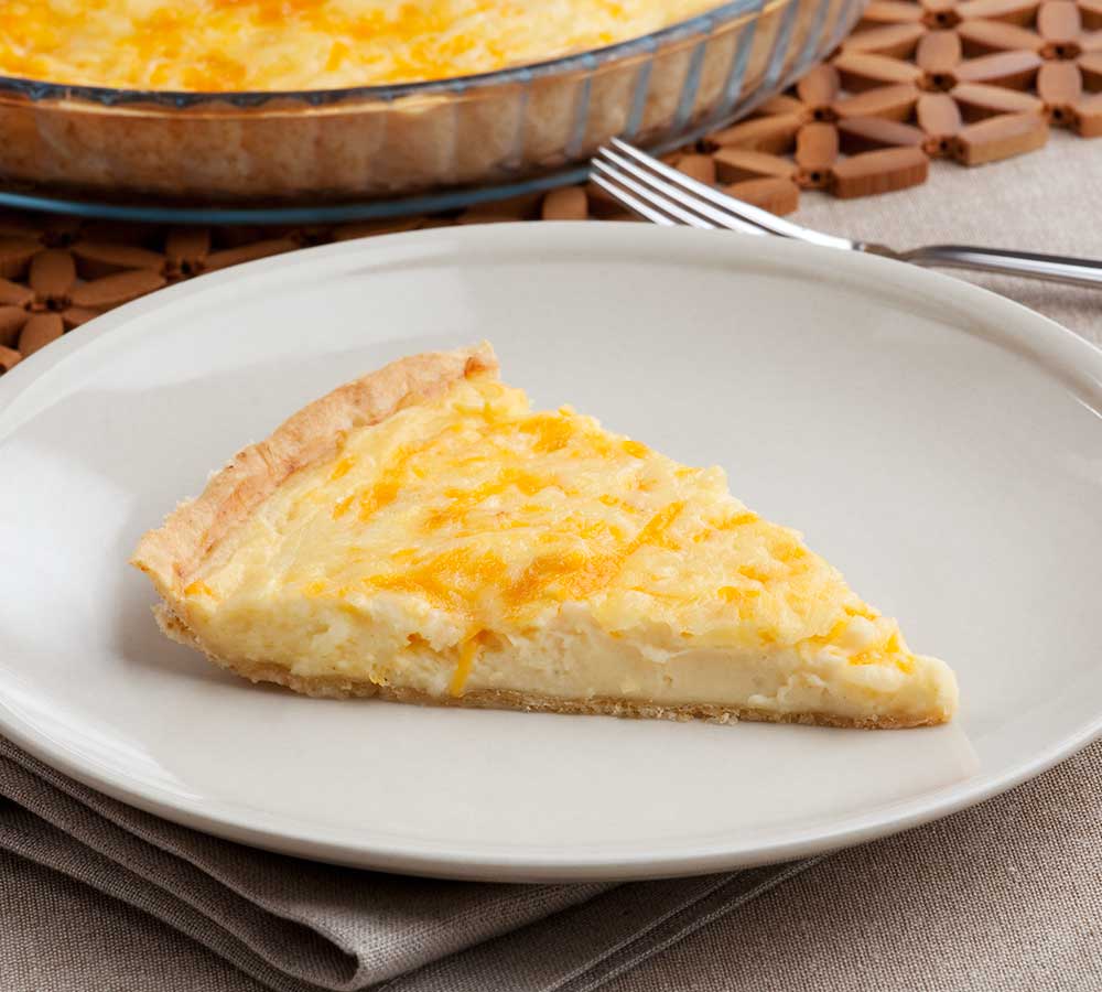 - Añada al vaso los huevos y mezcle 10 seg/vel 3. Vierta la mezcla sobre la masa pre horneada y espolvoree la mezcla de quesos rallados.