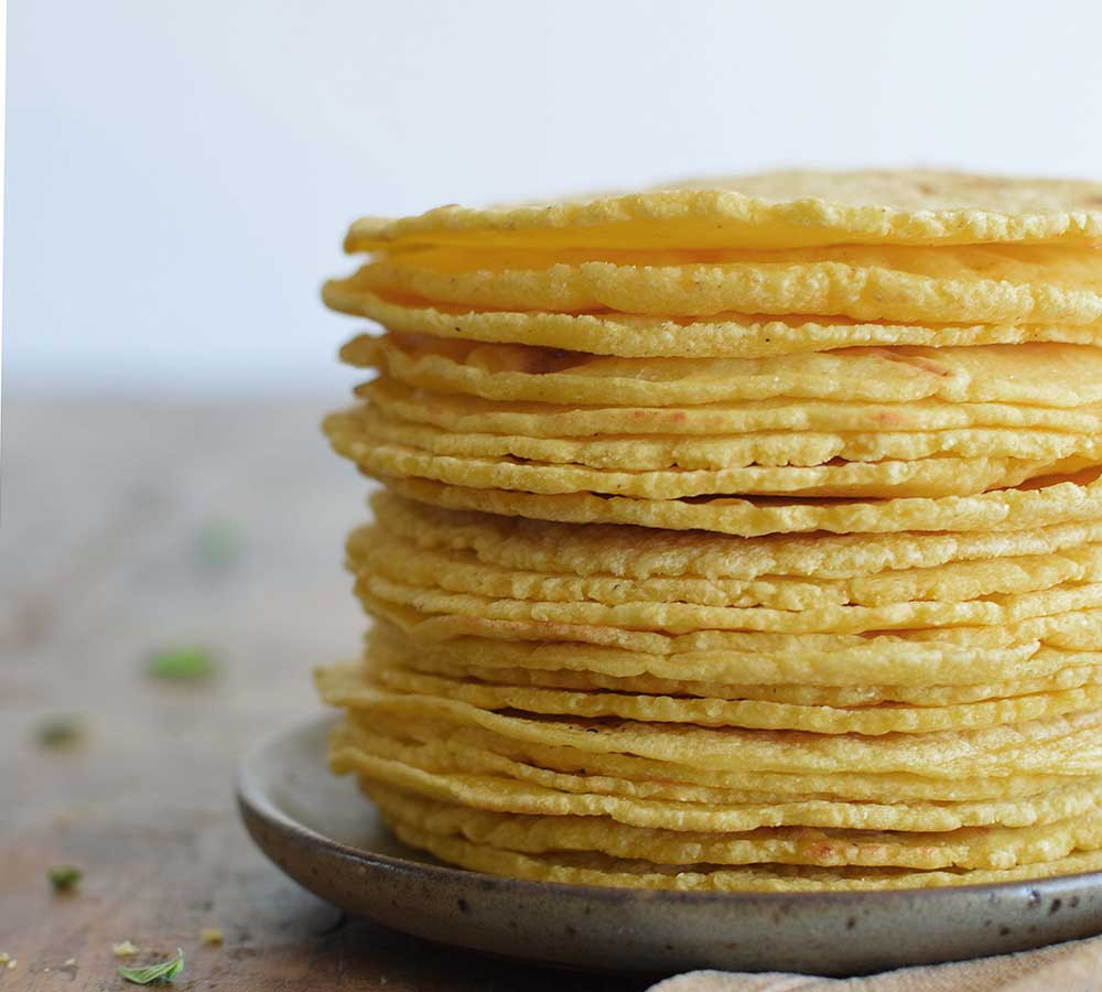 - Para formar las tortillas ponga cada bola de masa entremedio de 2 trozos de film transparente y aplaste con ayuda de una tabla para dar la forma típica de tortilla, debe ser de 20 cm de diámetro y de 1mm de espesor aprox.